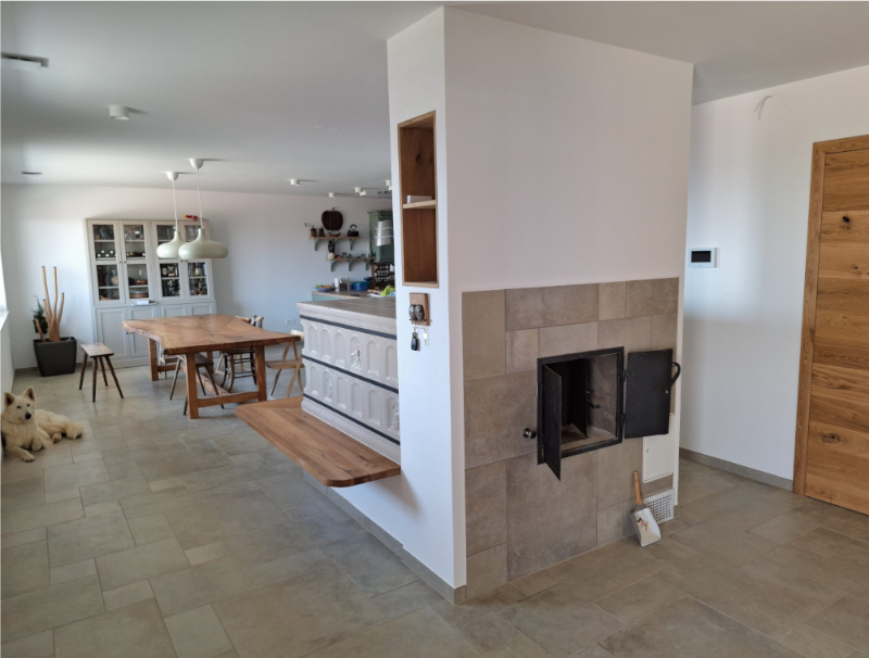 Srce kmečkega doma, ki ohranja tradicijo, a dopušča domišljijo pri obliki. Služi kot družabno stičišče, pečica in ogrevanje.
