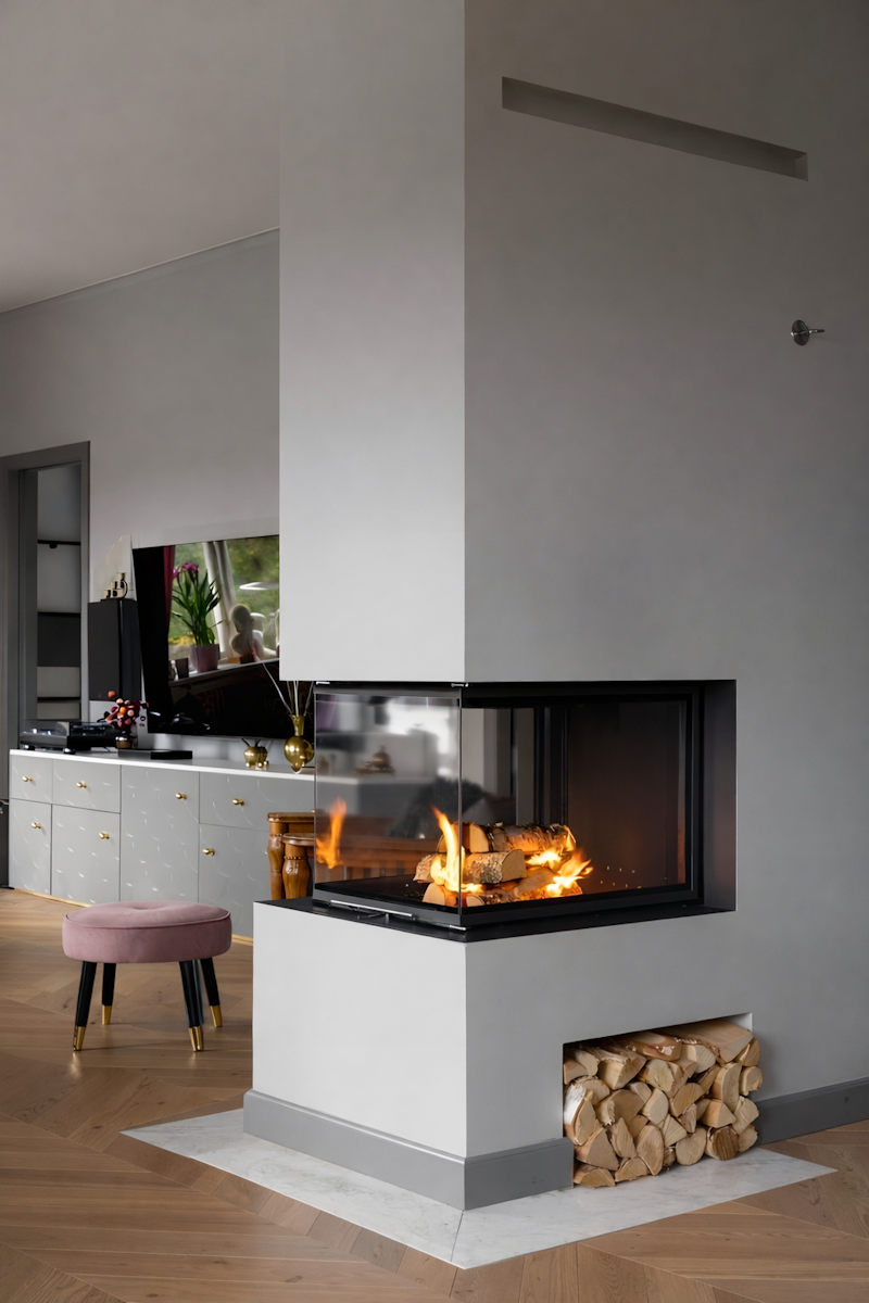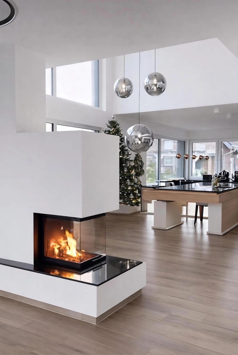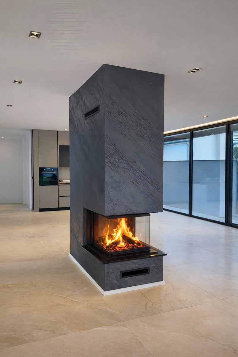 Kamini so lahko izdelani v različnih stilih – od izrazito opaznih do subtilno vključenih v bivalno okolje. Vidno stekleno kurišče lahko zaključimo z ometom ali obložimo s pečnicami, kar prispeva k njihovemu estetskemu videzu.