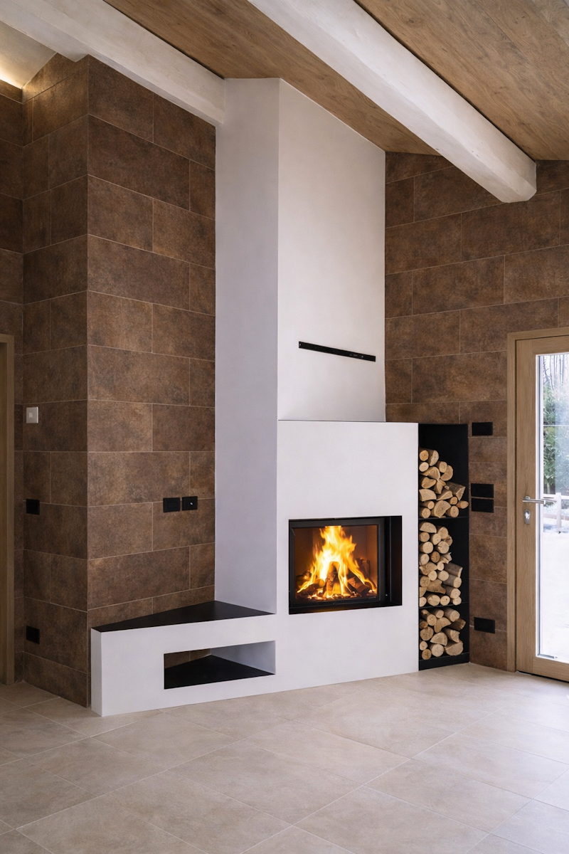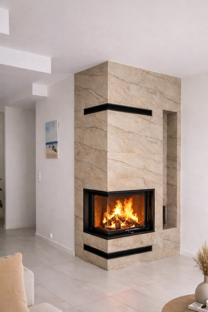 Čeprav nimajo velike akumulacijske sposobnosti, so odlični za sodoben hiter življenjski slog, saj ponujajo hitro ogrevanje brez dolgotrajnega shranjevanja toplote. Kamin je pogosto umeščen v osrednji prostor, zato je pomembno, da estetsko dopolnjuje okolje tudi, ko ni v uporabi.