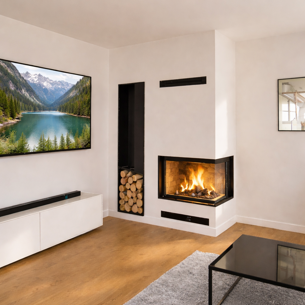 Moderni kamini so zasnovani z kaminskim vložkom, opremljenim z varnostnimi steklenimi vratci, ki je lahko obzidan z različnimi materiali. Ti kamini hitro ogrejejo prostor in ponujajo estetski užitek s prasketajočim ognjem, ki ustvarja sproščujoče vzdušje.